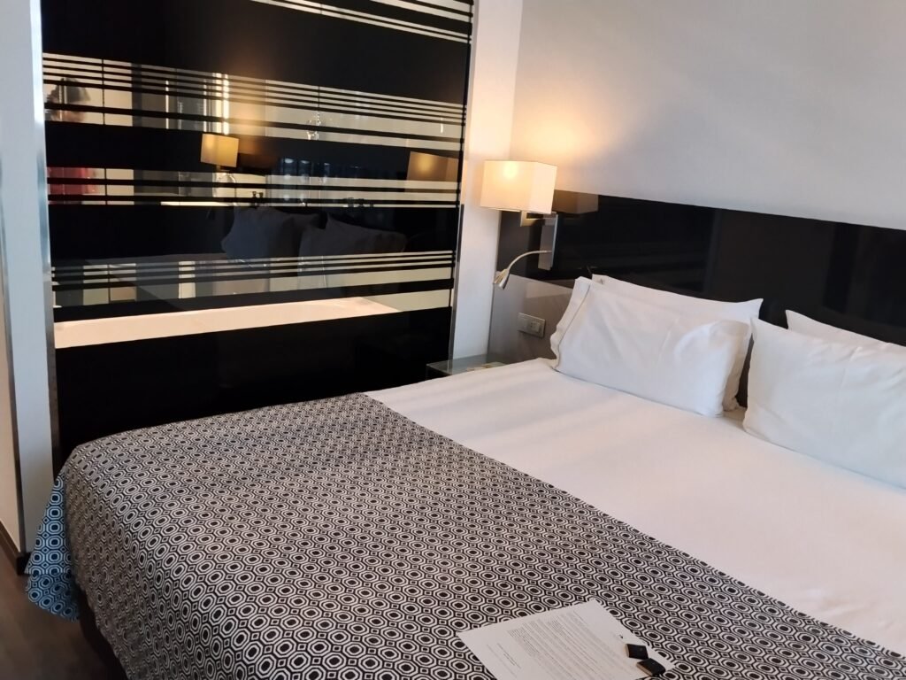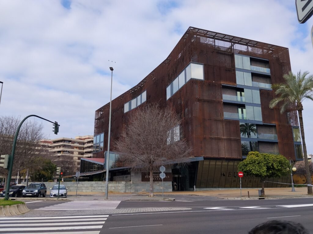 The Eurostars Palace in Córdoba nails the “pro” vibe with its moody, dark-toned interior and striking iron facade. It’s got a sleek, modern edge that feels more like a high-end gallery than a boring hotel.